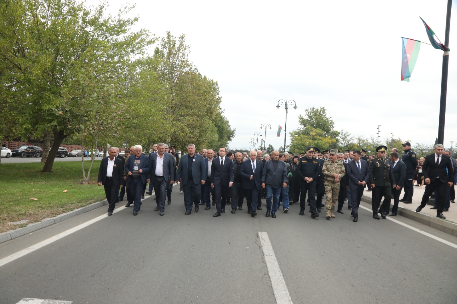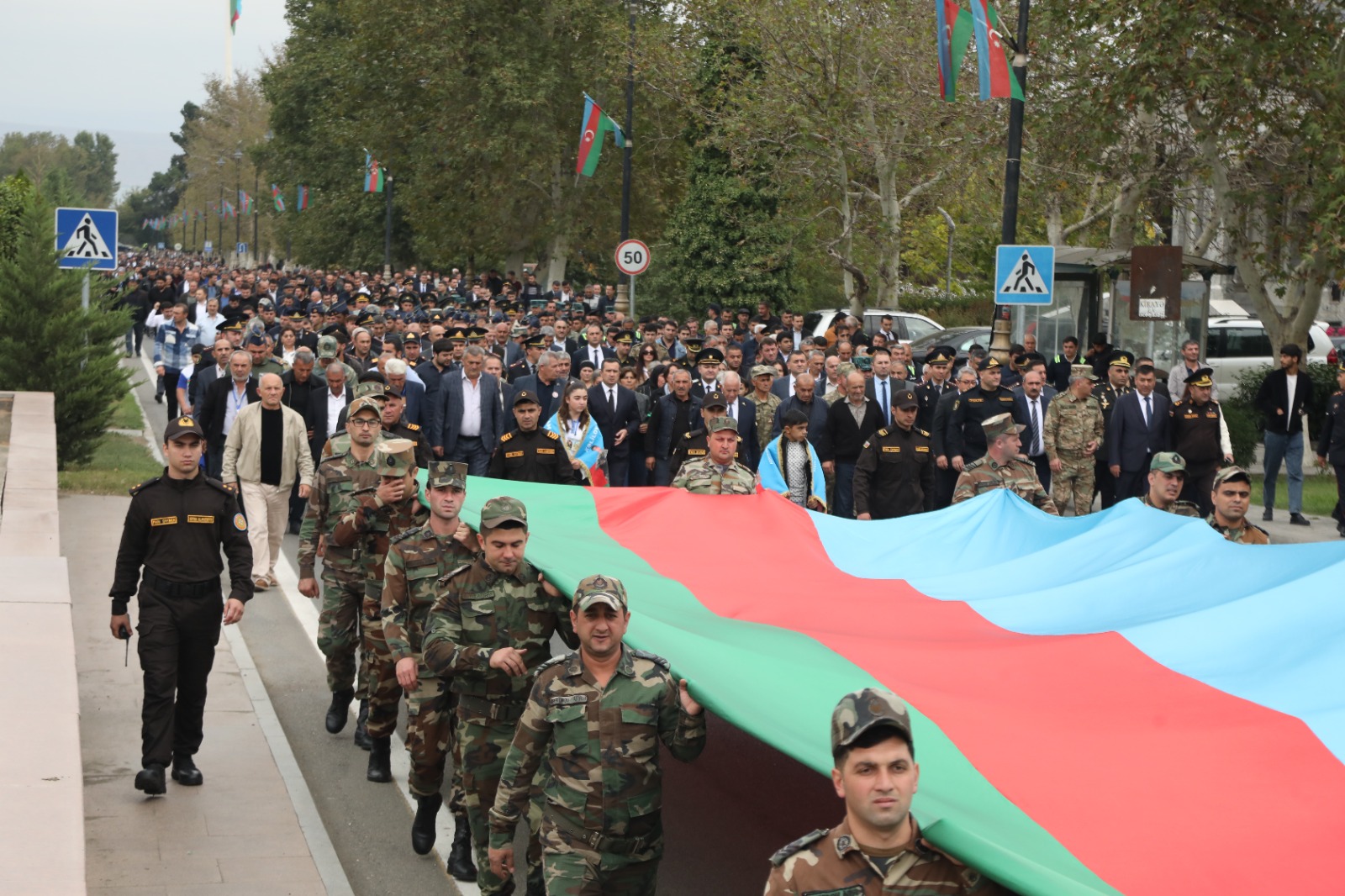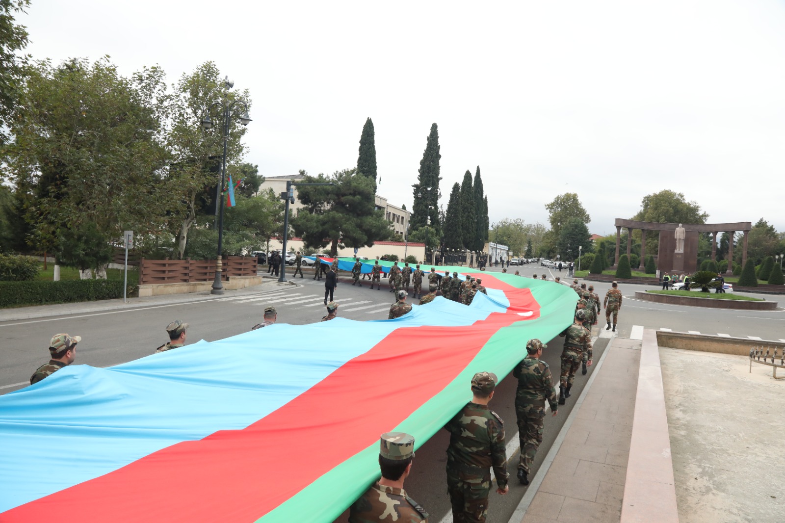 Tədbir iştirakçıları əvvəlcə 50 metr uzunluğunda Şanlı Azərbaycan bayrağını rayon mərkəzindən Şəhidlər Xiyabanına gətirib, Azərbaycanın ərazi bütövlüyü uğrunda canlarından keçən əsgər və zabitlərimizin xatirəsinə ucaldılmış Abidə Kompleksinin önünə əklil qoydular.